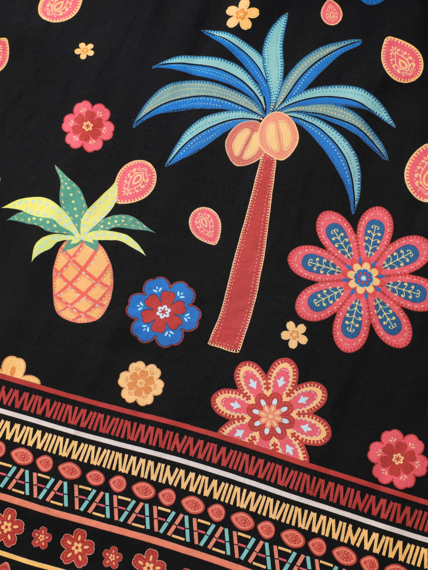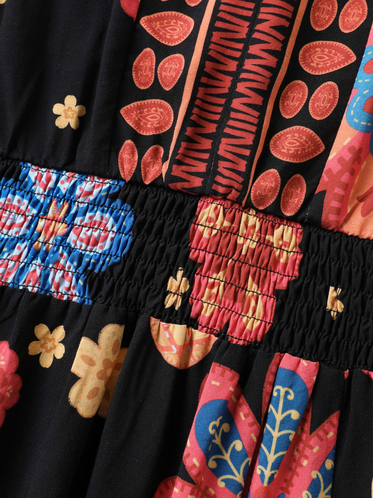 Rayon Tropical Floral Shirred Waist Midi Dress