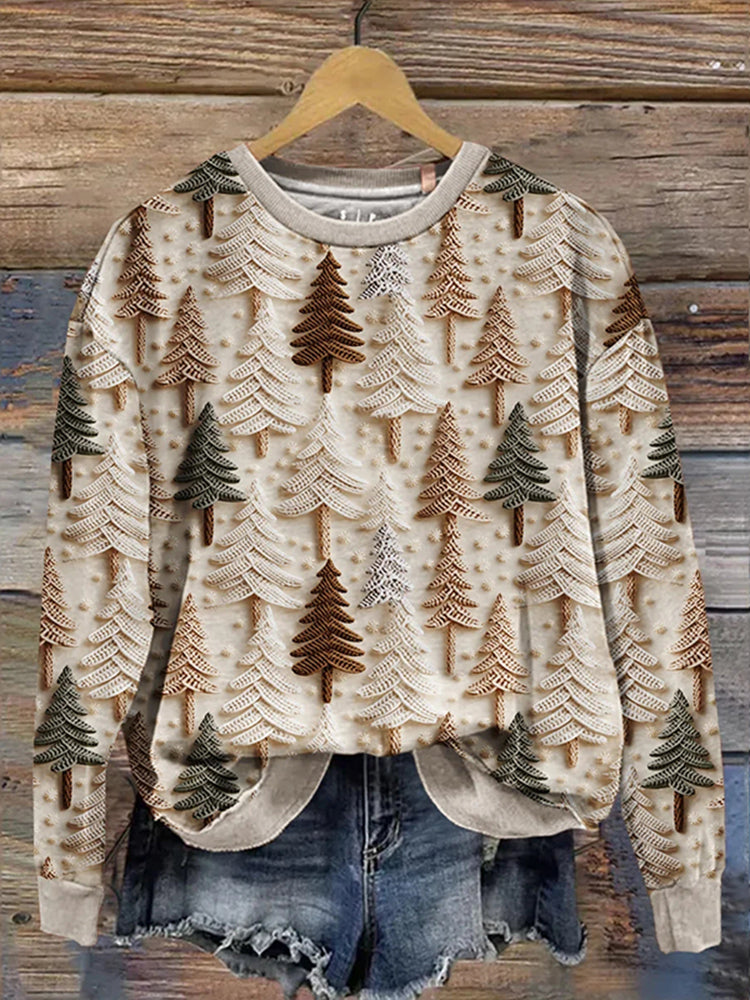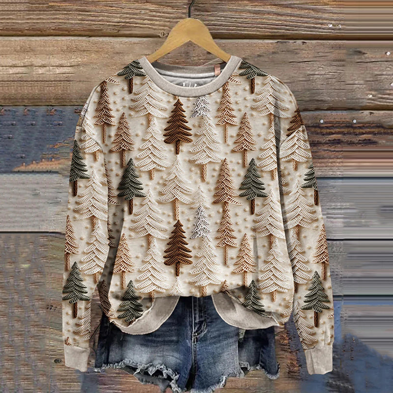 Retro Christmas Gift Christmas Tree Art Design Print Casual Sweatshirt