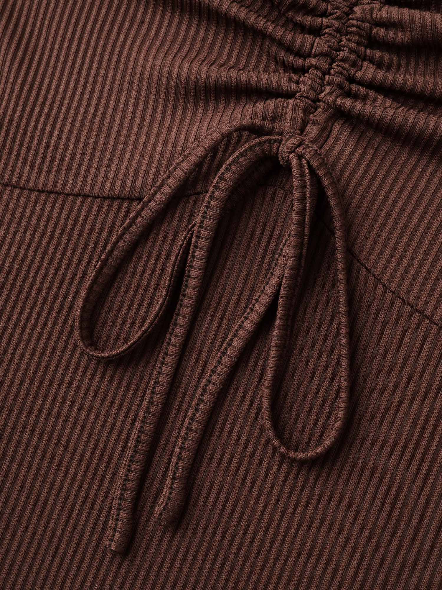 Ribbed Adjustable Drawstring Bodice Flared T-Shirt