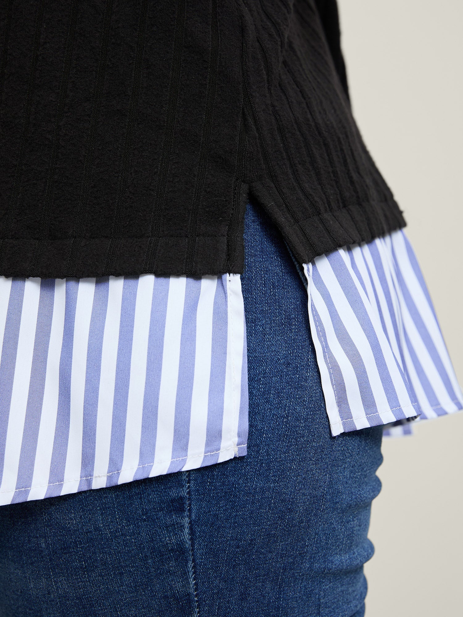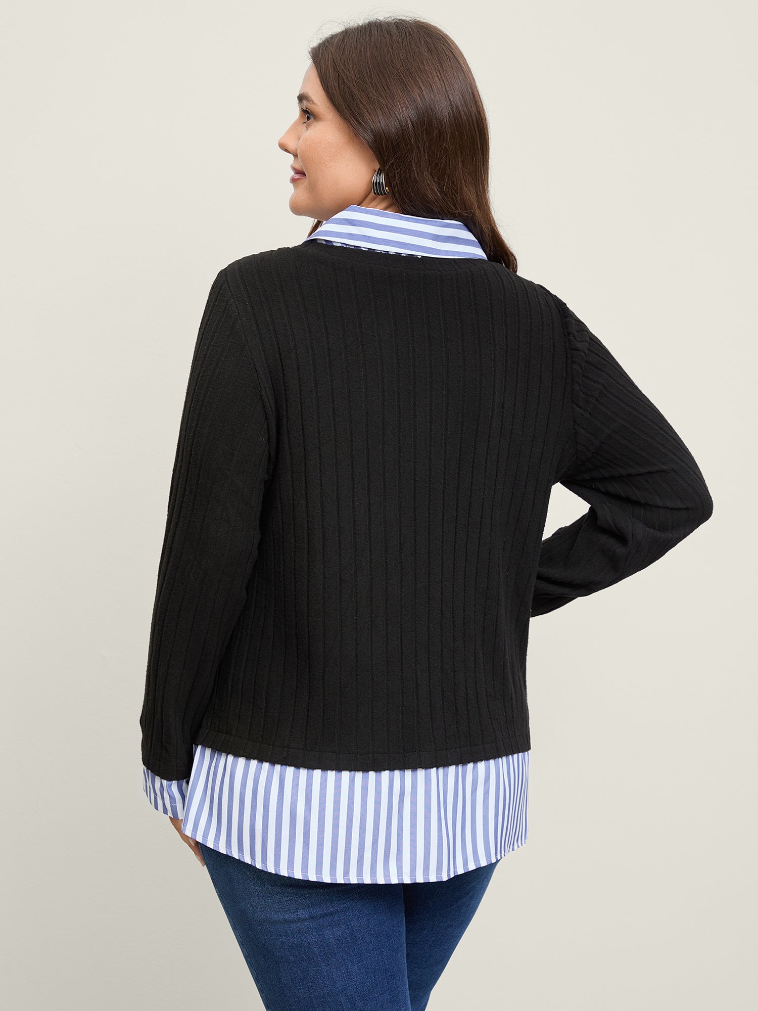 Ribbed Striped Stretchy Sweatshirt Top