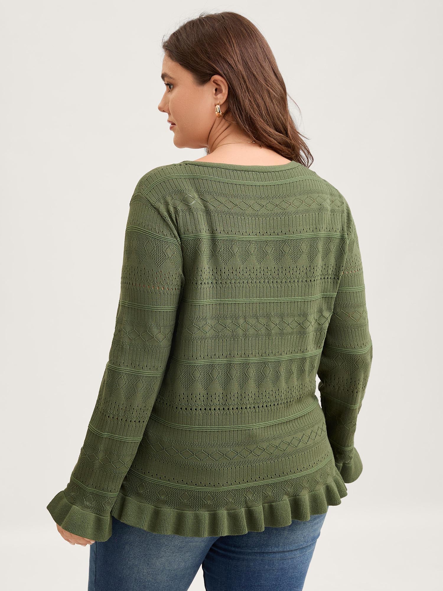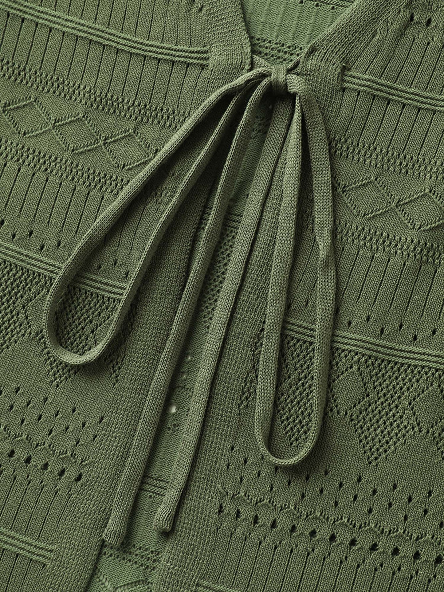 Ruffled Hem Front Tie Textured Lightweight Cardigan