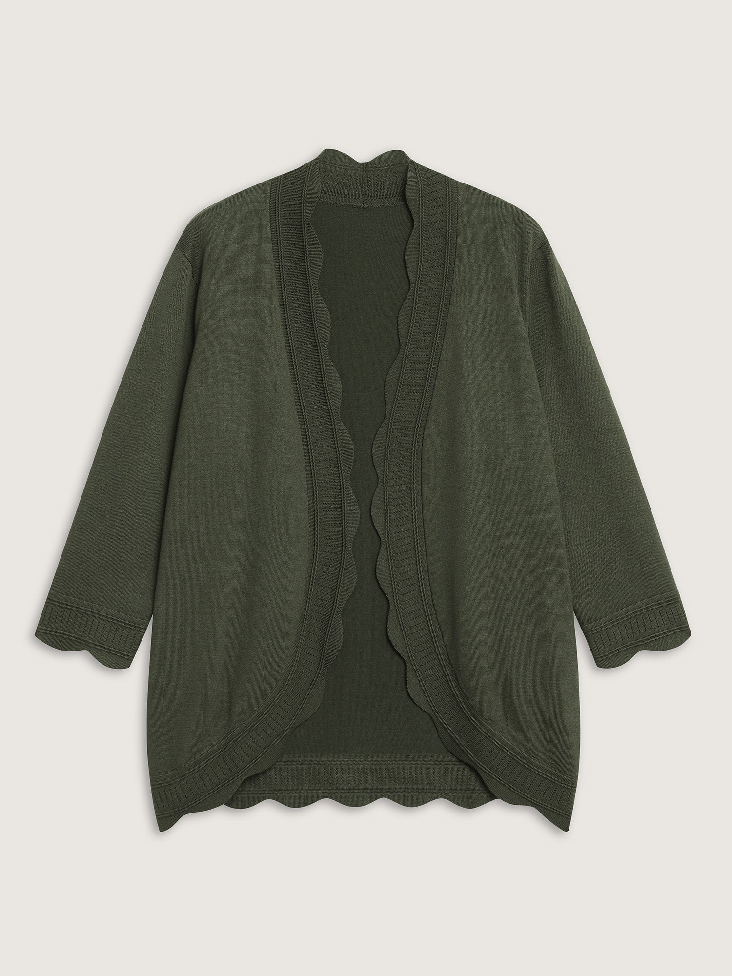 Supersoft Scalloped Trim Three-Quarter Sleeve Cardigan