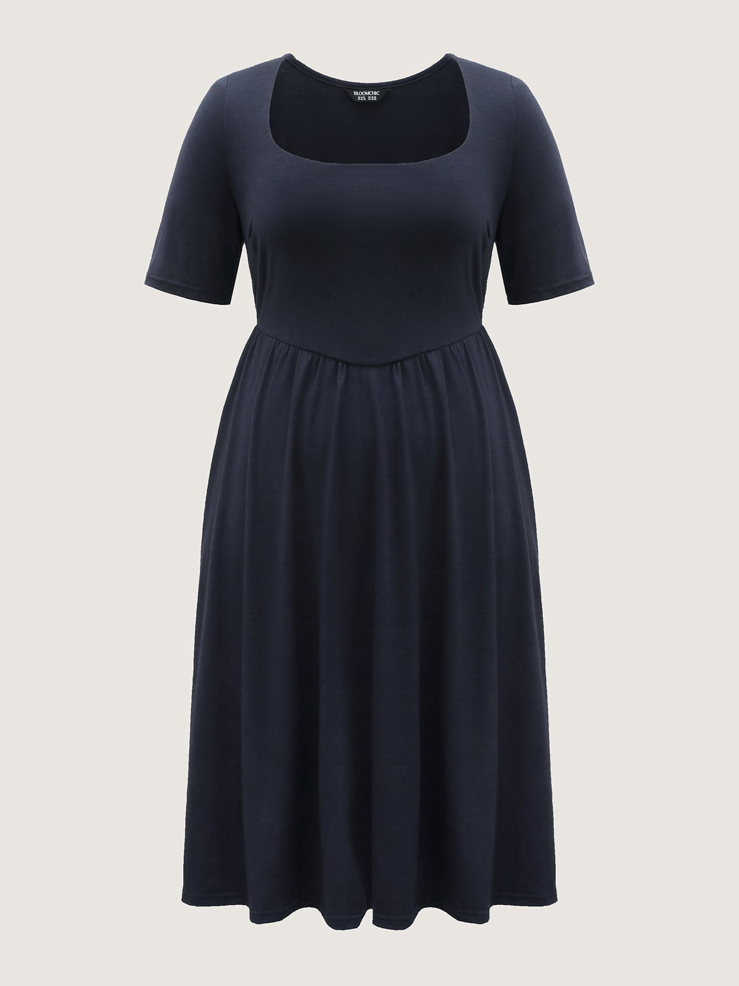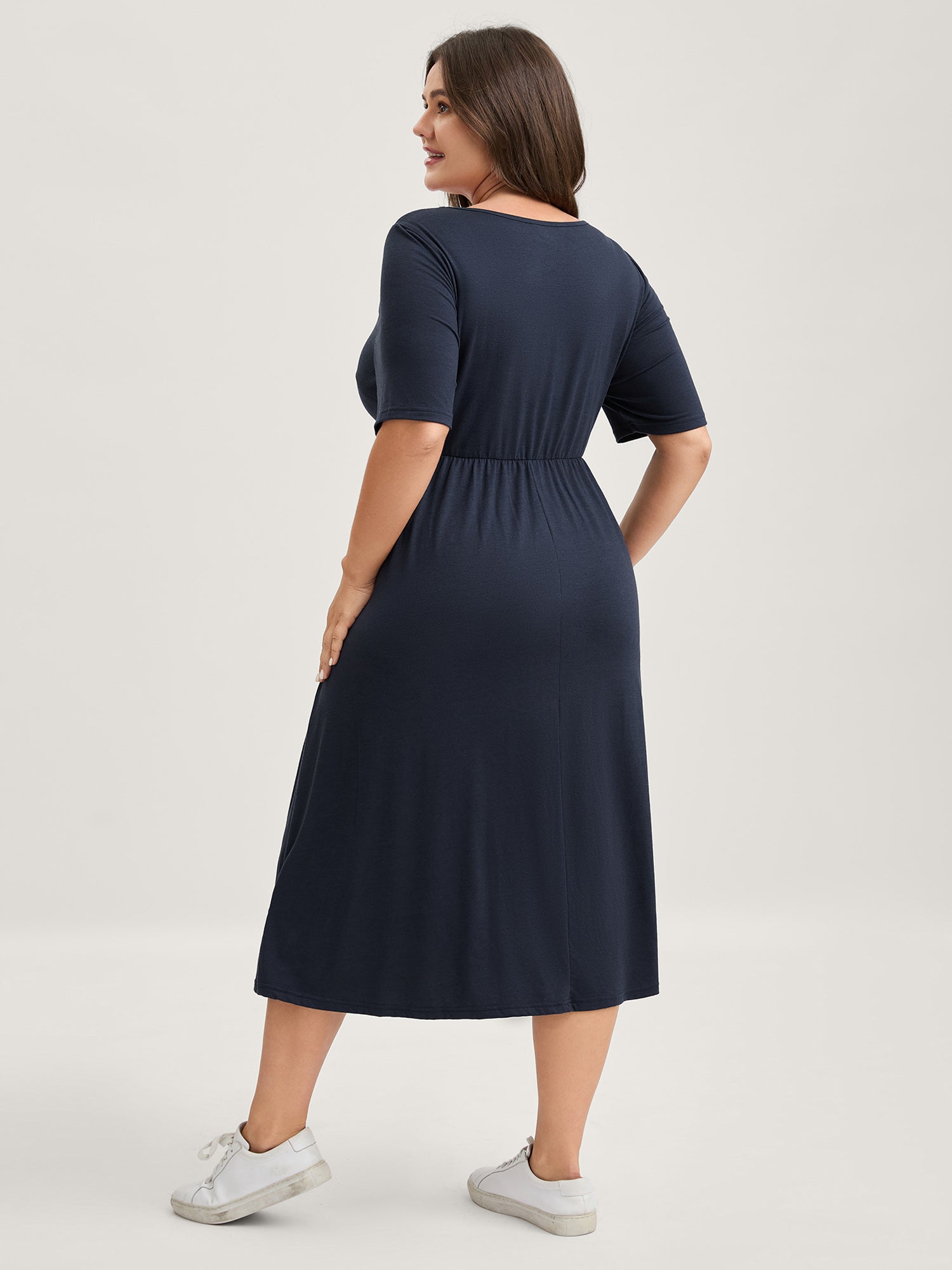Scoop Neck Stretch Solid Pockets Midi Dress