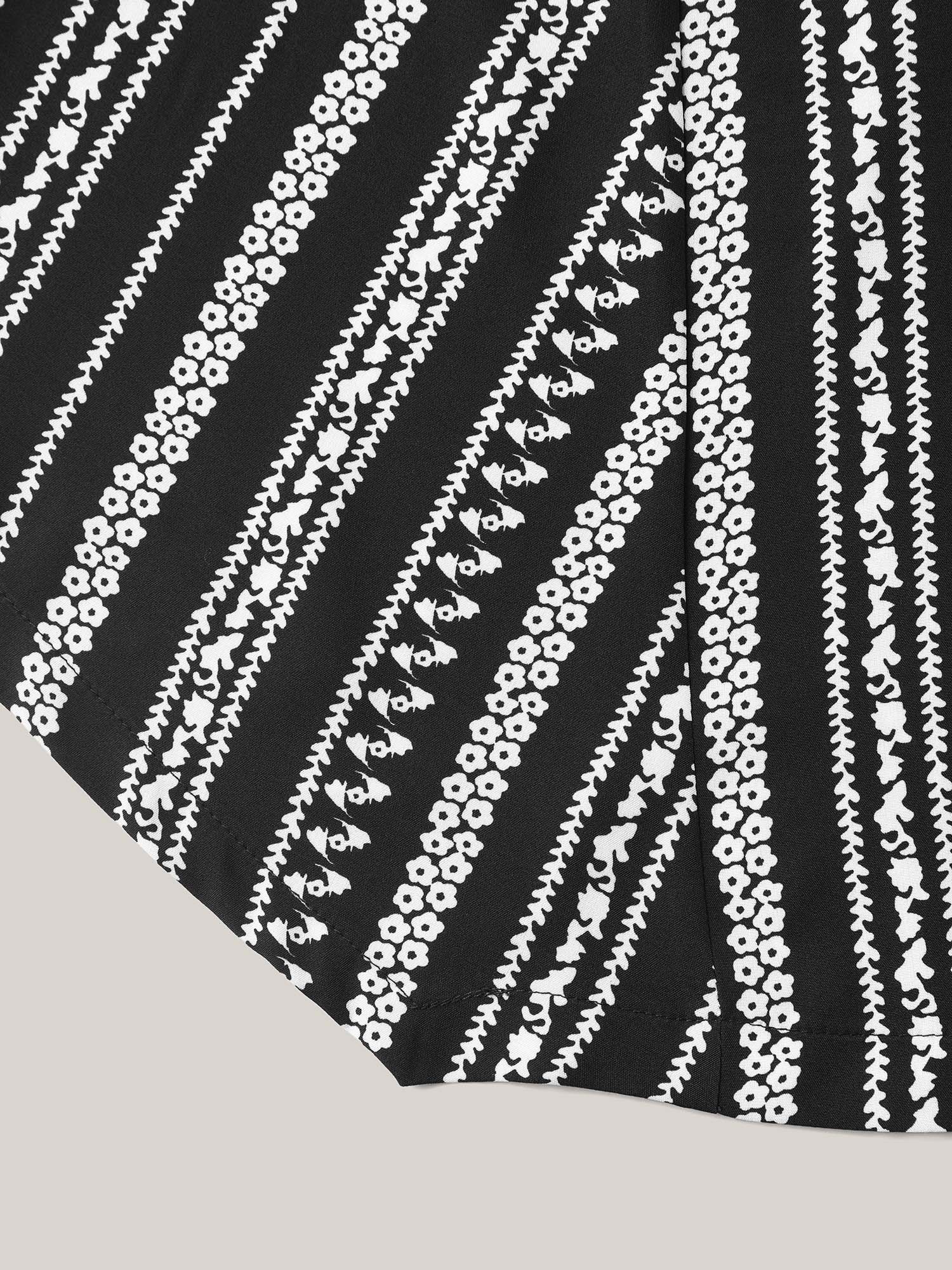 Striped Overlap Print Curvy Hem Blouse