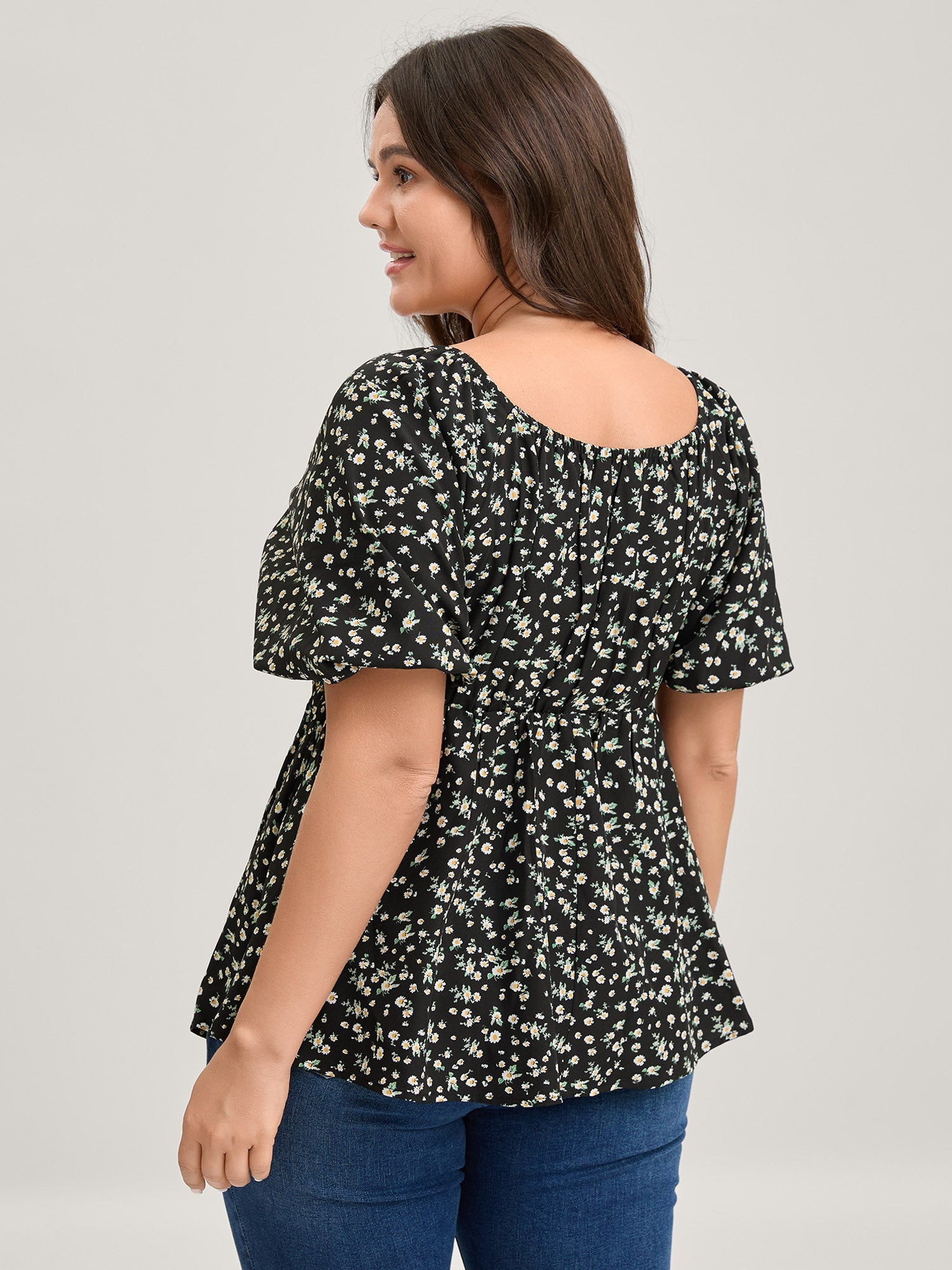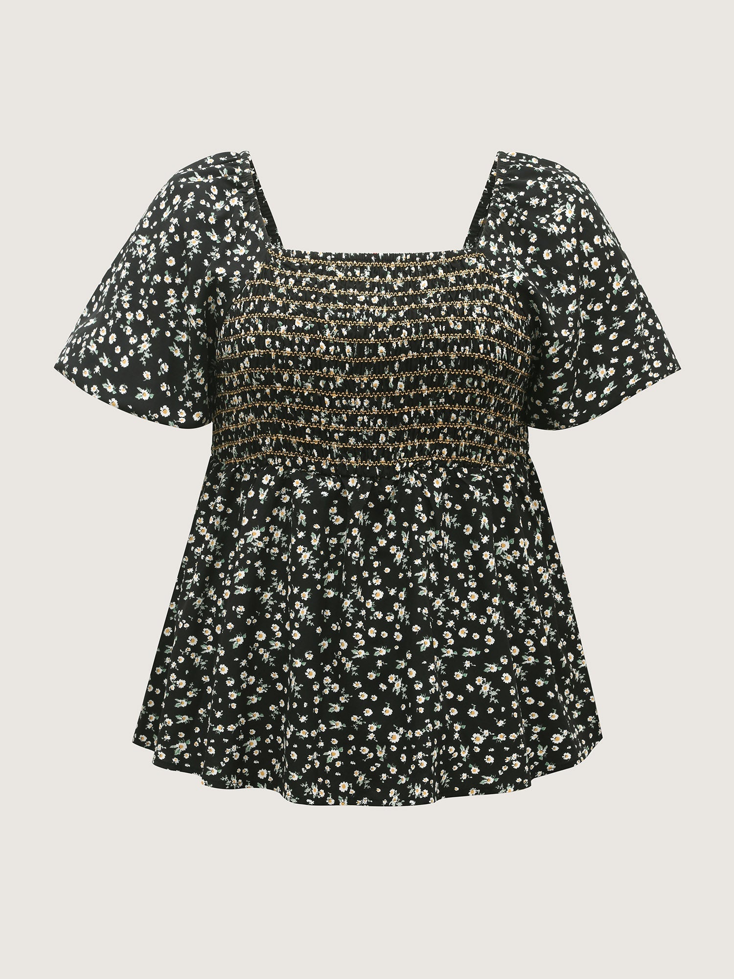 Shirred Bust Floral Fit and Flared Blouse