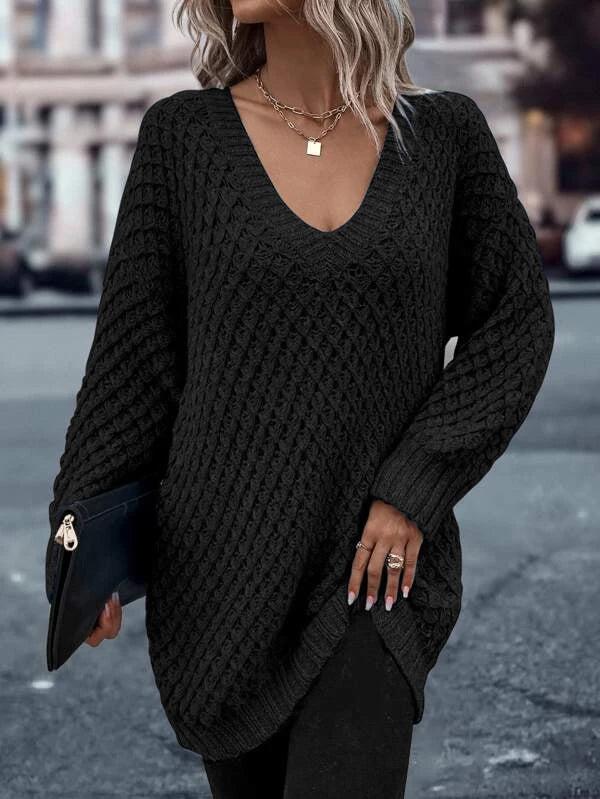 Solid Drop Shoulder Cotton Oversized Sweater