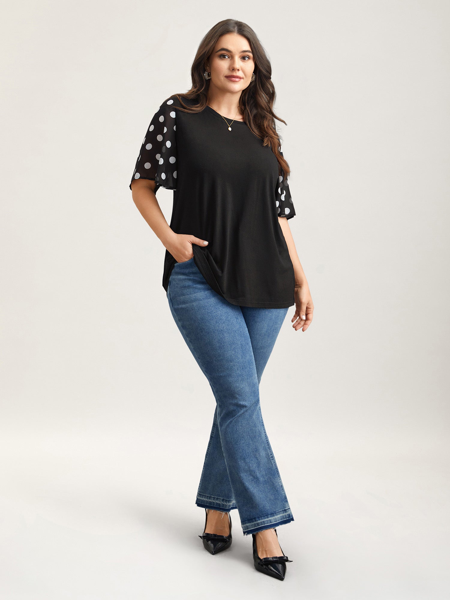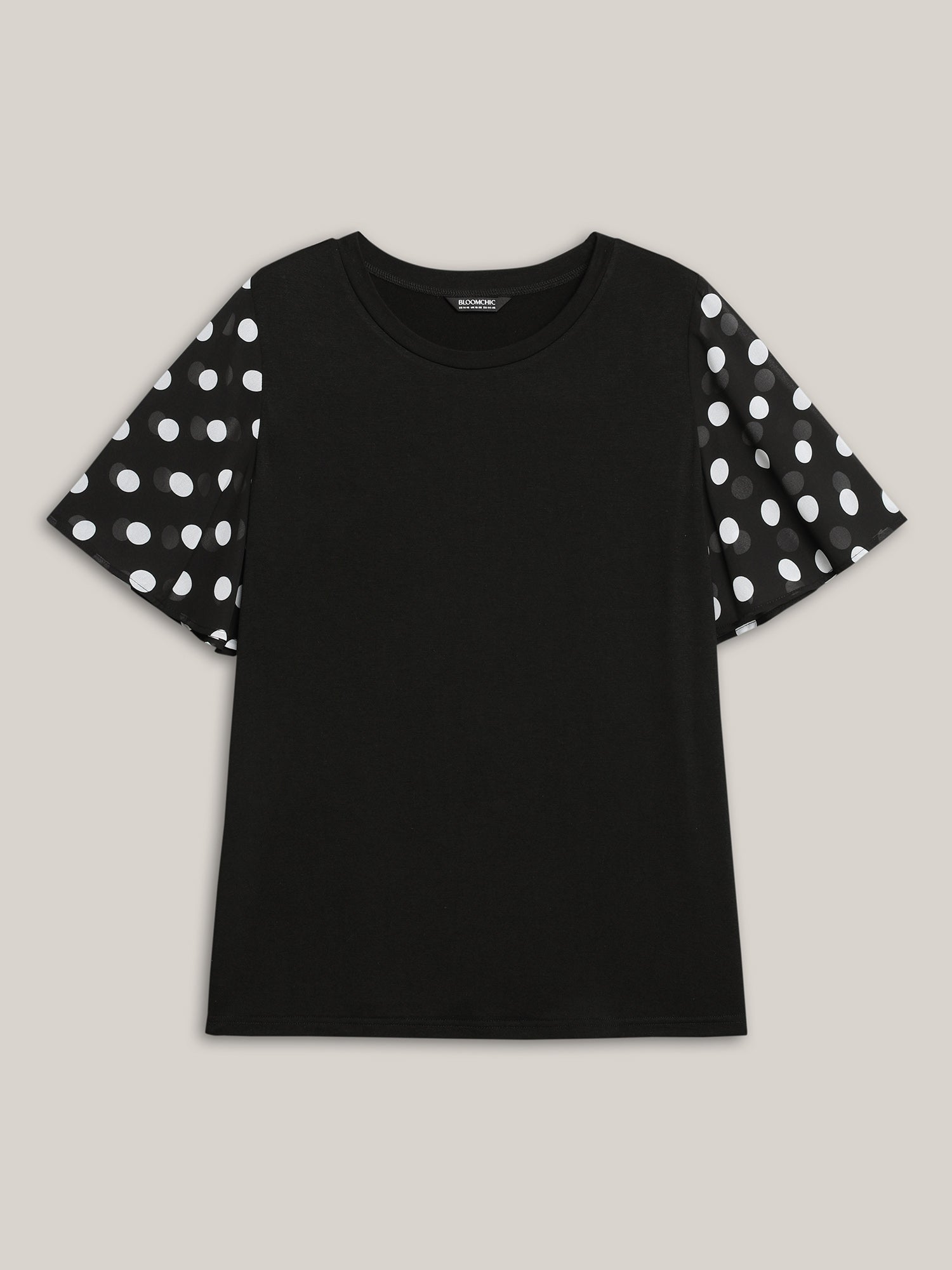 Stretchy Sheer Dot Sleeve Textured T-Shirt