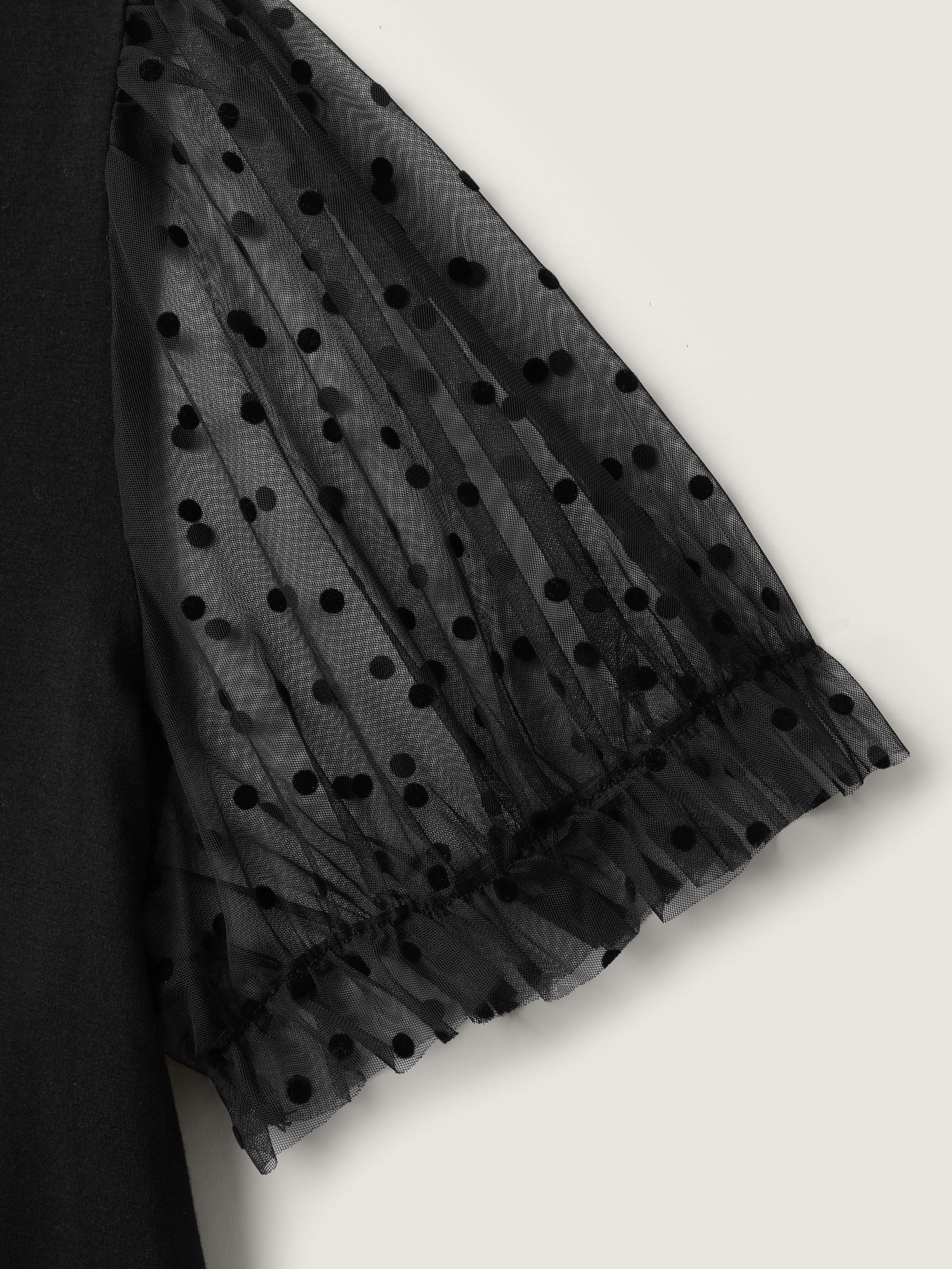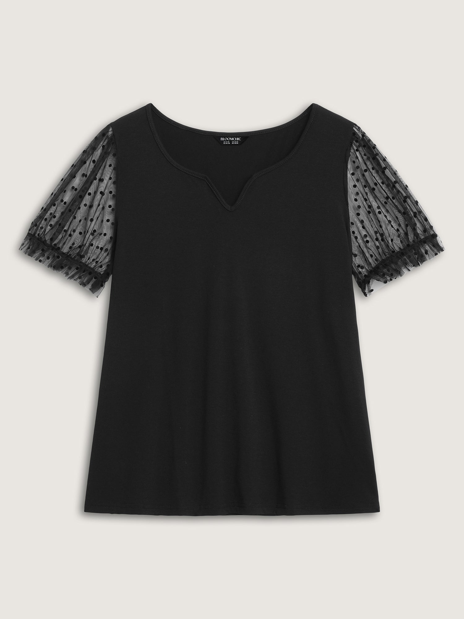Stretchy Sheer Textured Sleeve Solid T-Shirt