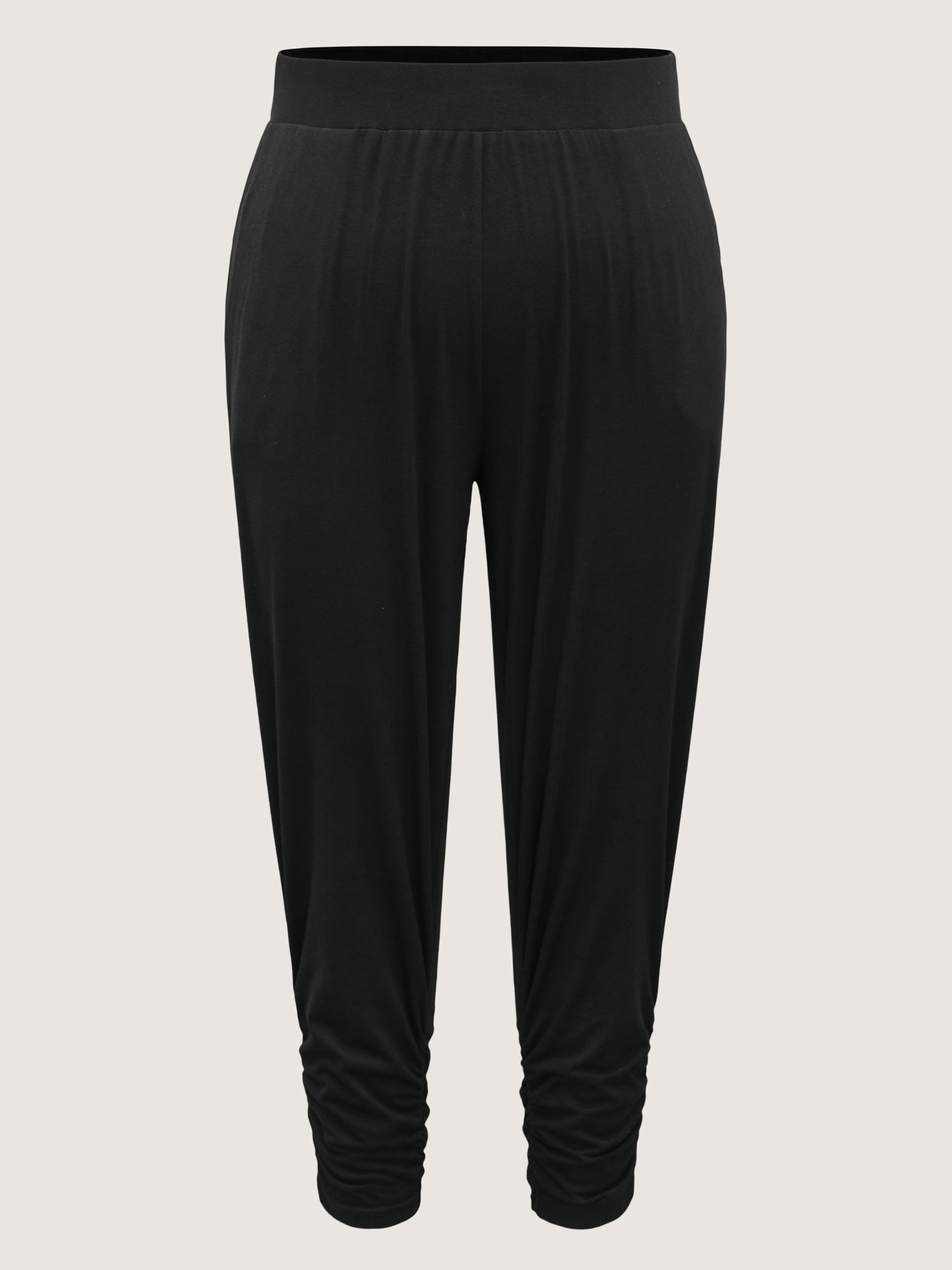 Stretchy Straight-Leg Gathered Hem Pants