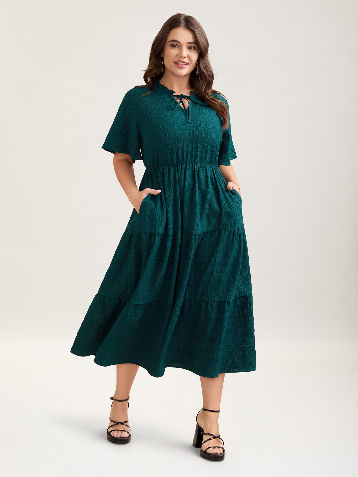 Stretchy Waist Frill Trim Pockets Midi Dress