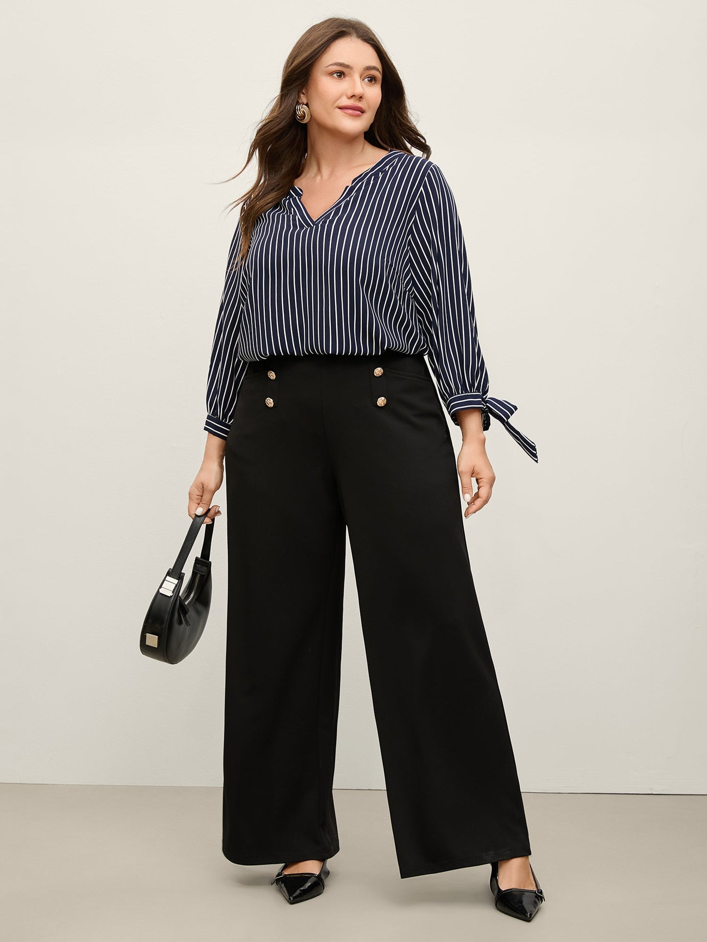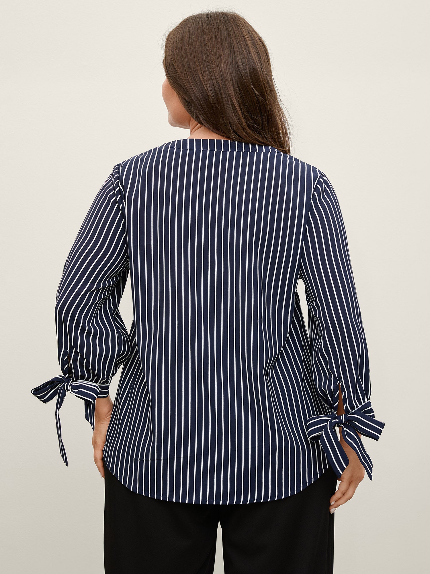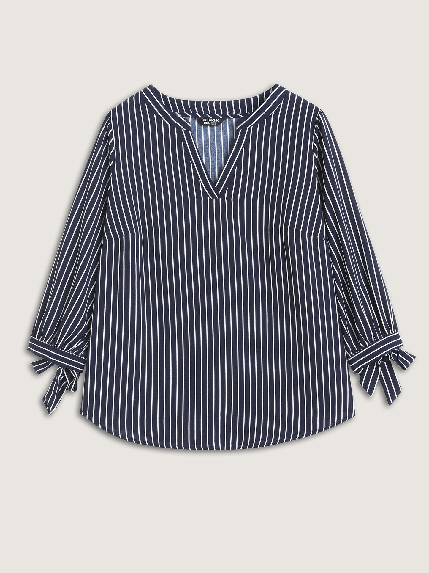 Striped Notched Collar Sleeve Tie Blouse