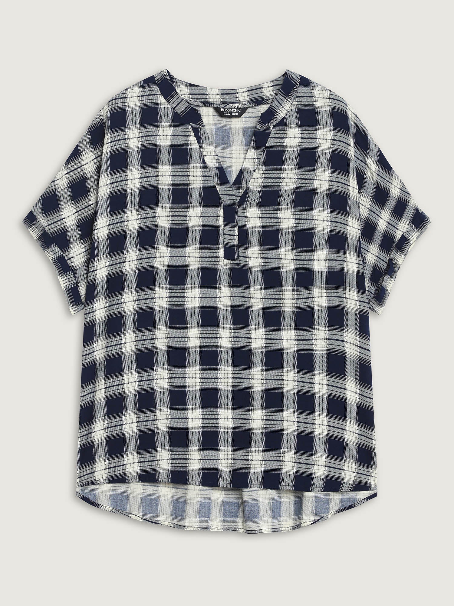 Supersoft Checkered Print Cuffed Sleeve Blouse