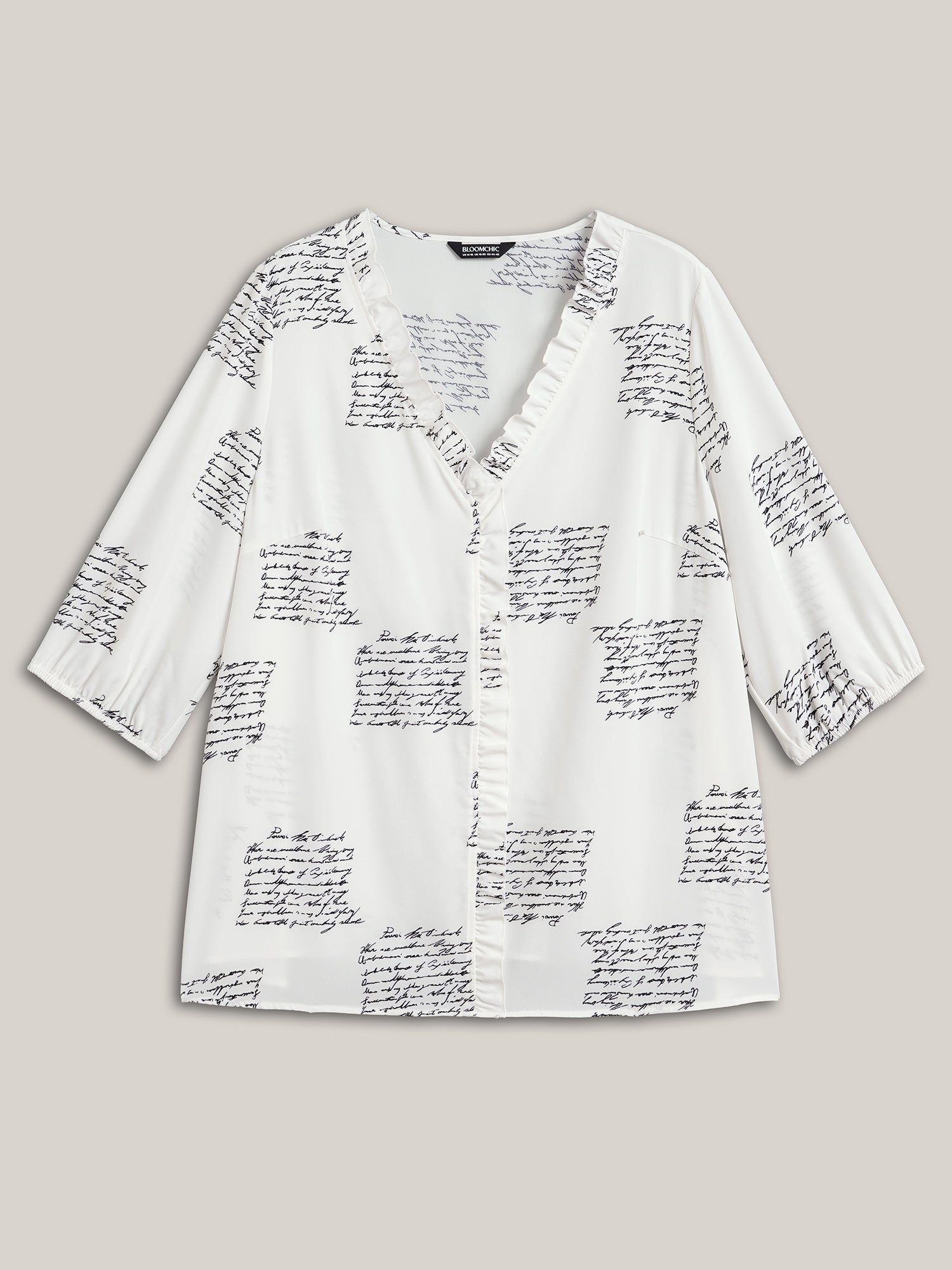Text Pattern Ruffled Lantern Sleeve Blouse