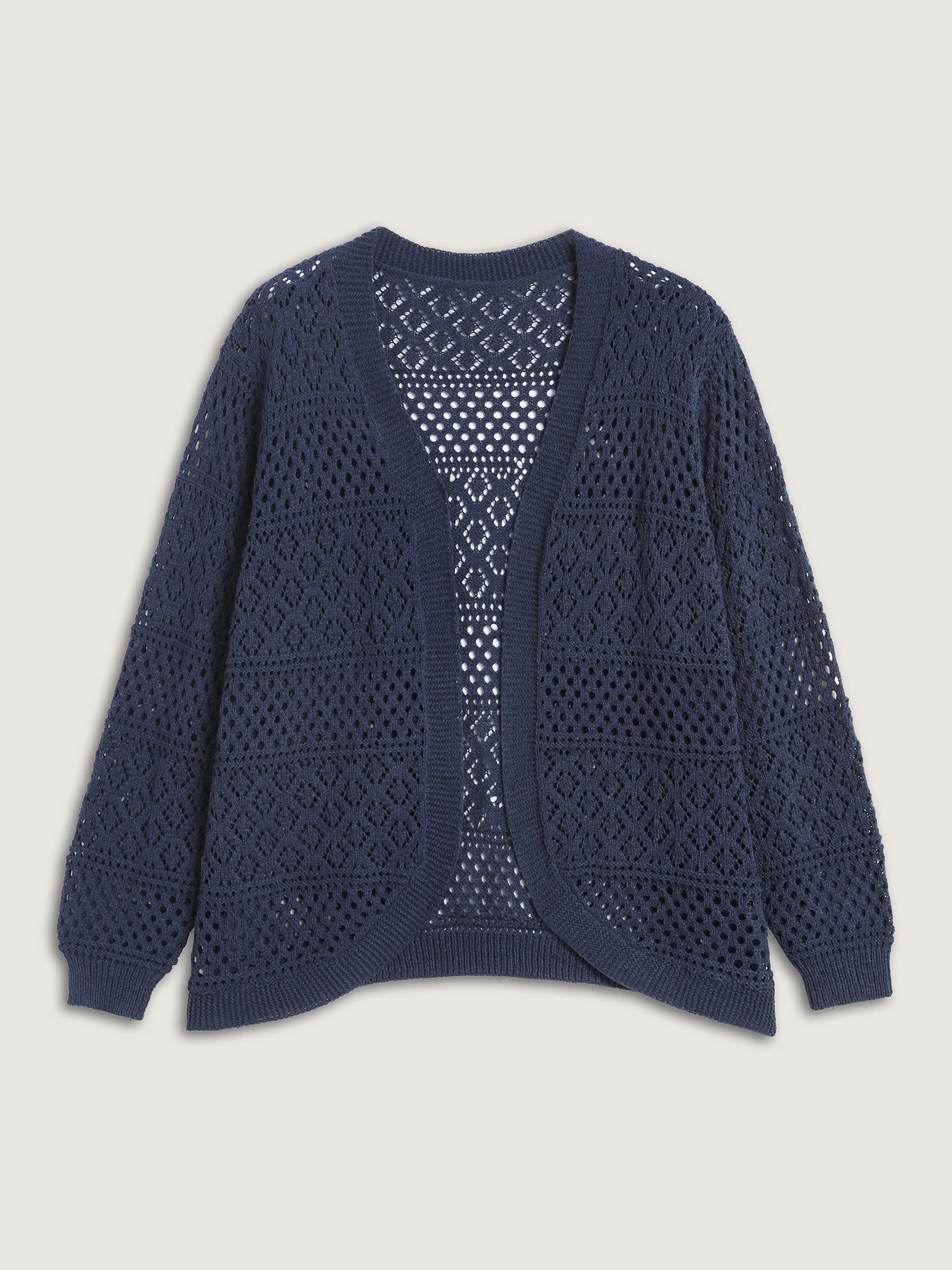 Textured Cut-Out Arc Hem Lightweight Cardigan