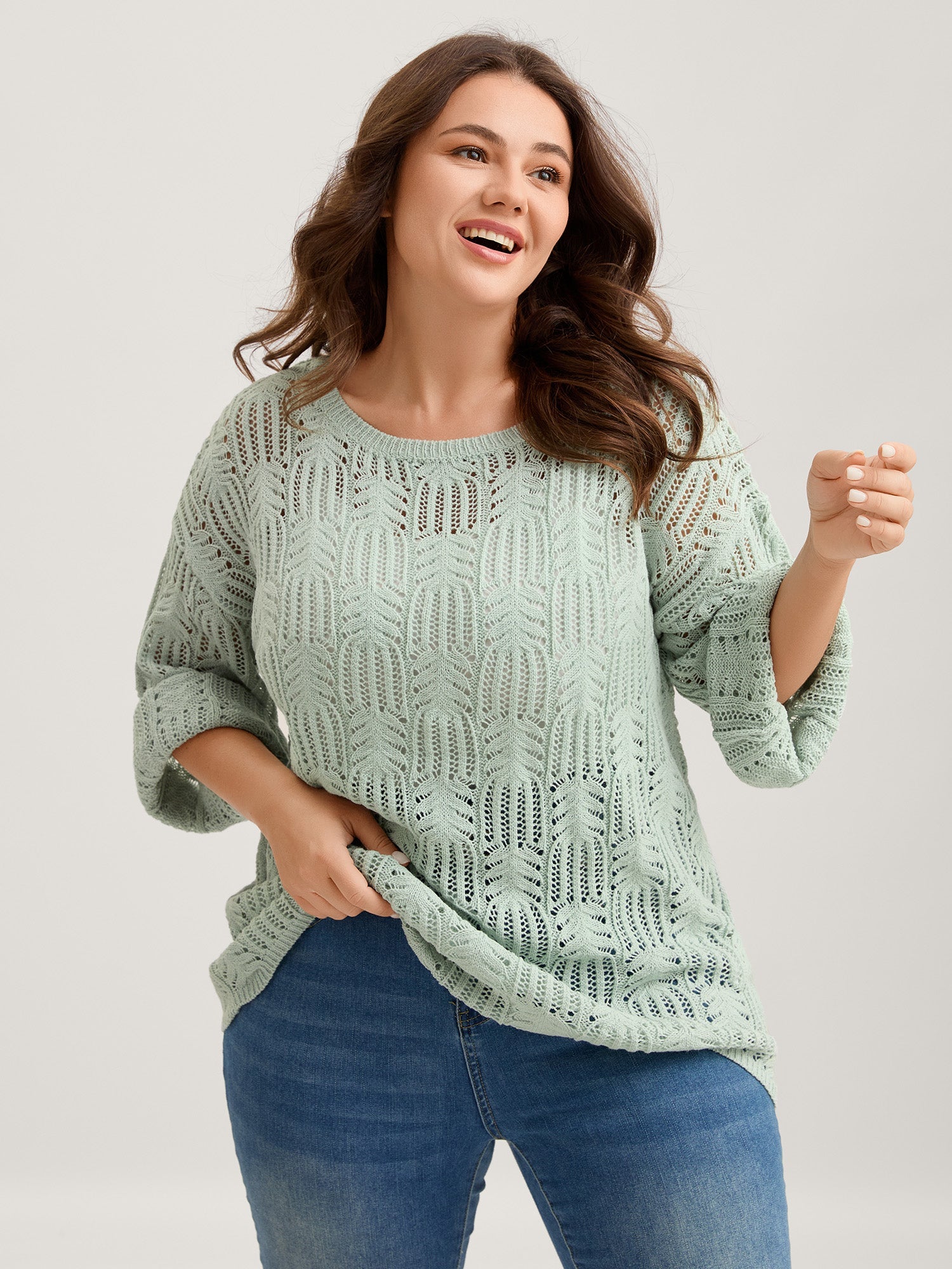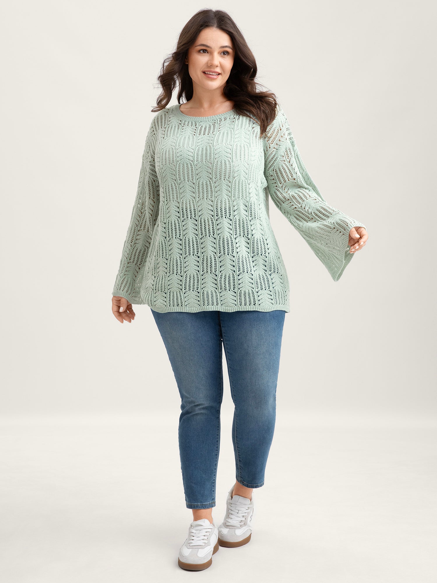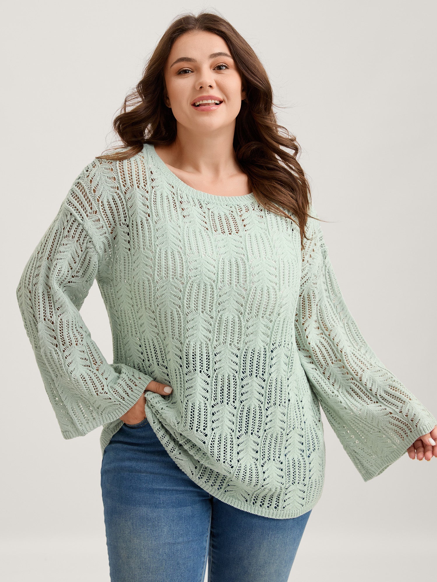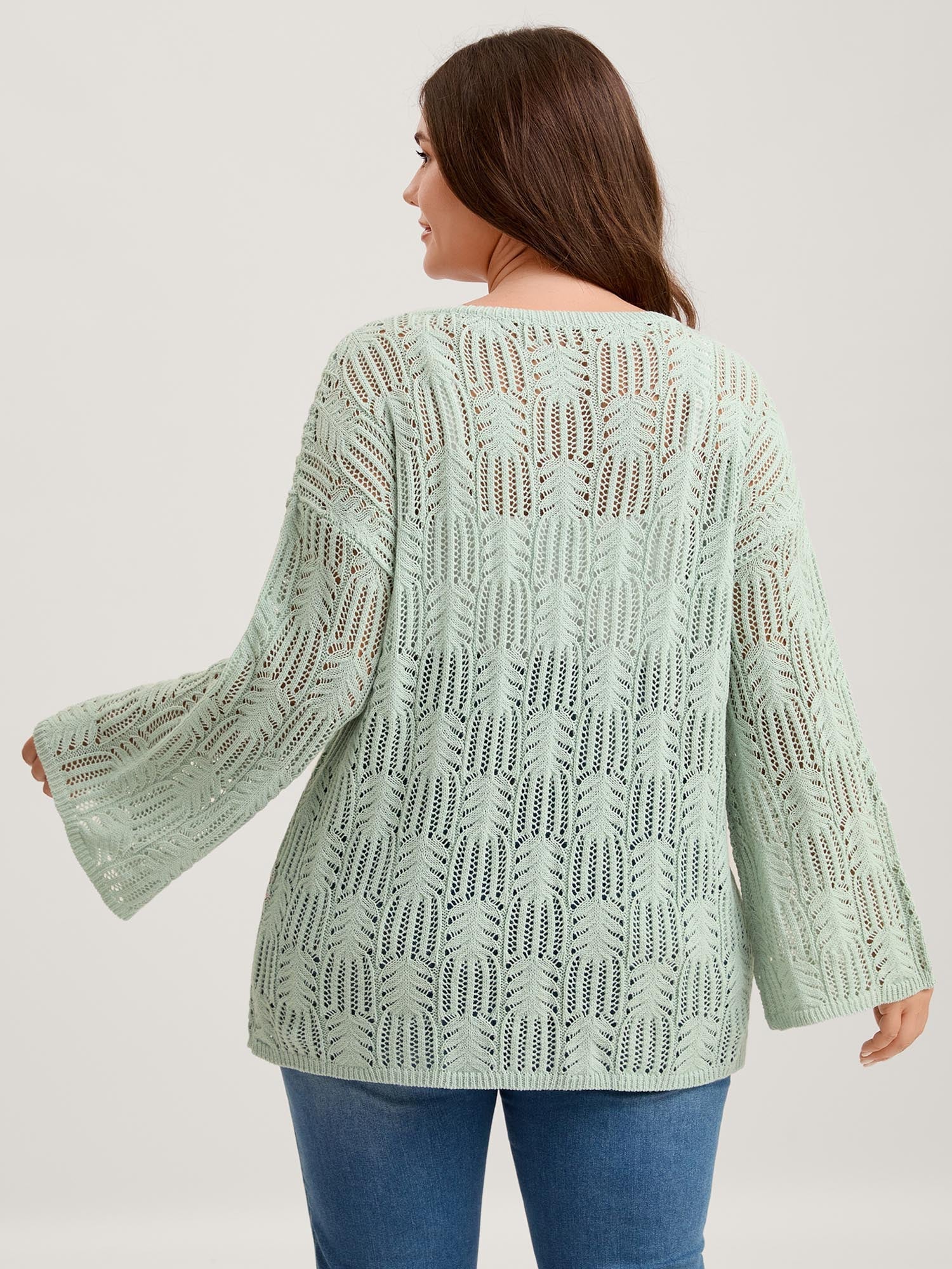 Textured Cut-Out Flared Sleeve Lightweight Pullover