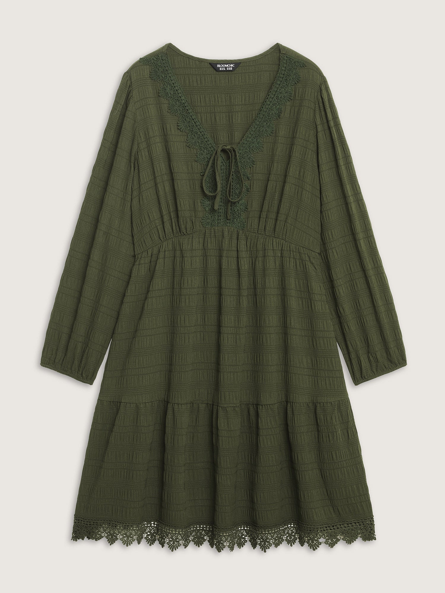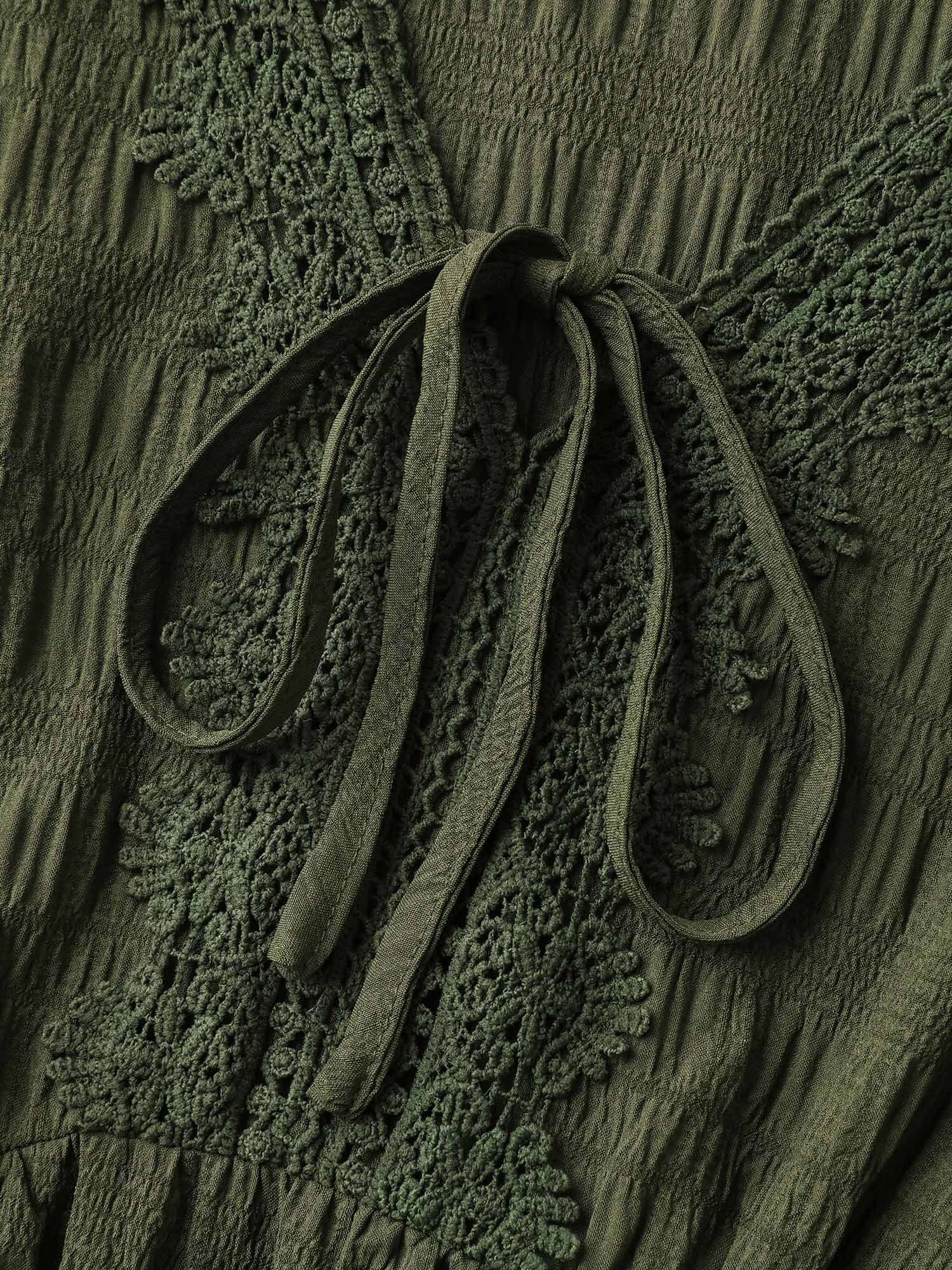 Textured Lace Adjustable Neck-Tie Midi Dress