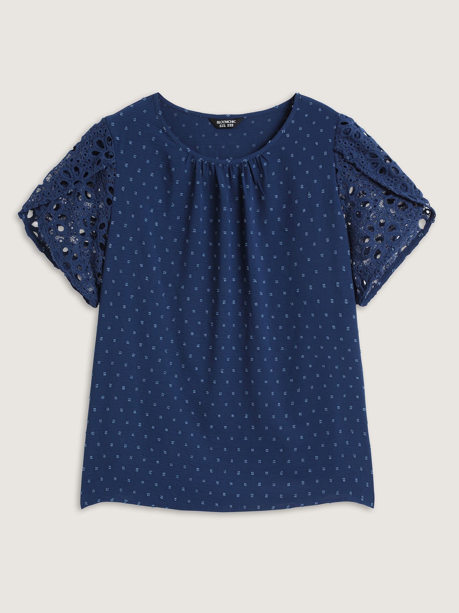 Textured Lace Petal Sleeve Pleated Neck Blouse