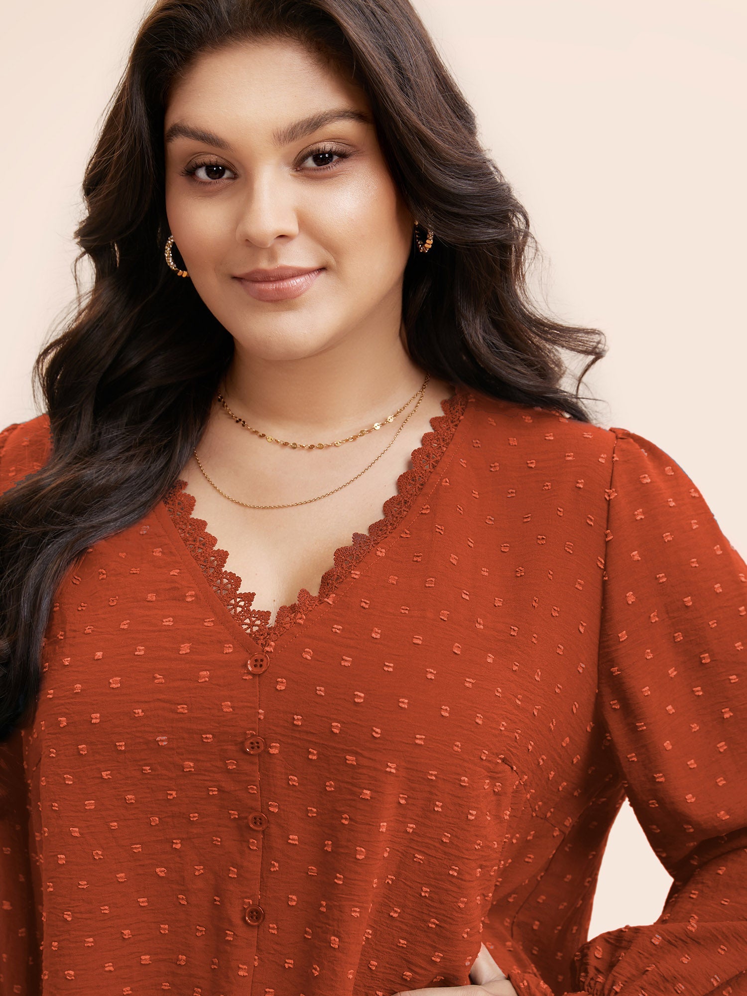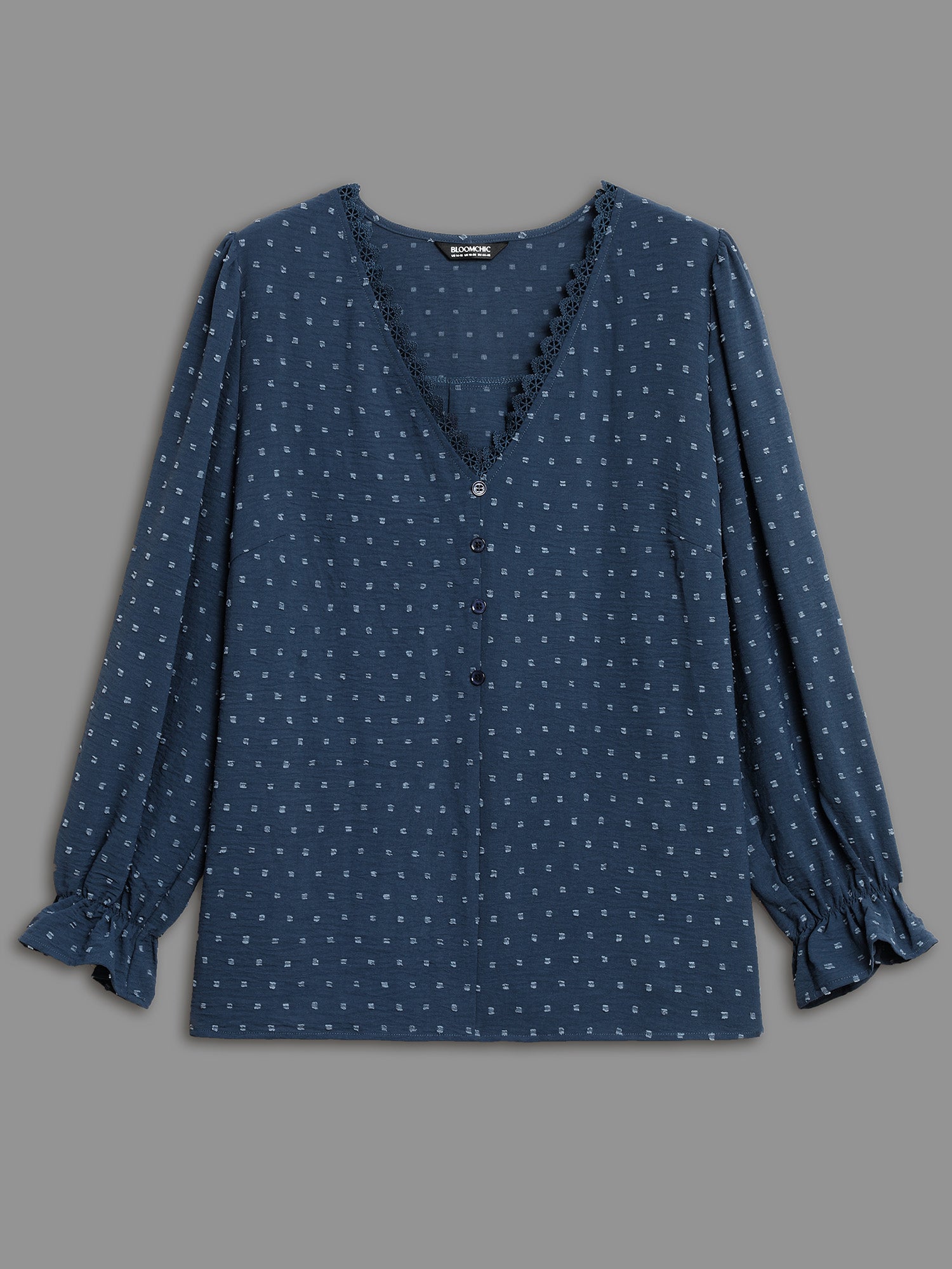 Textured Lace Trim Patchwork Ruffles Blouse