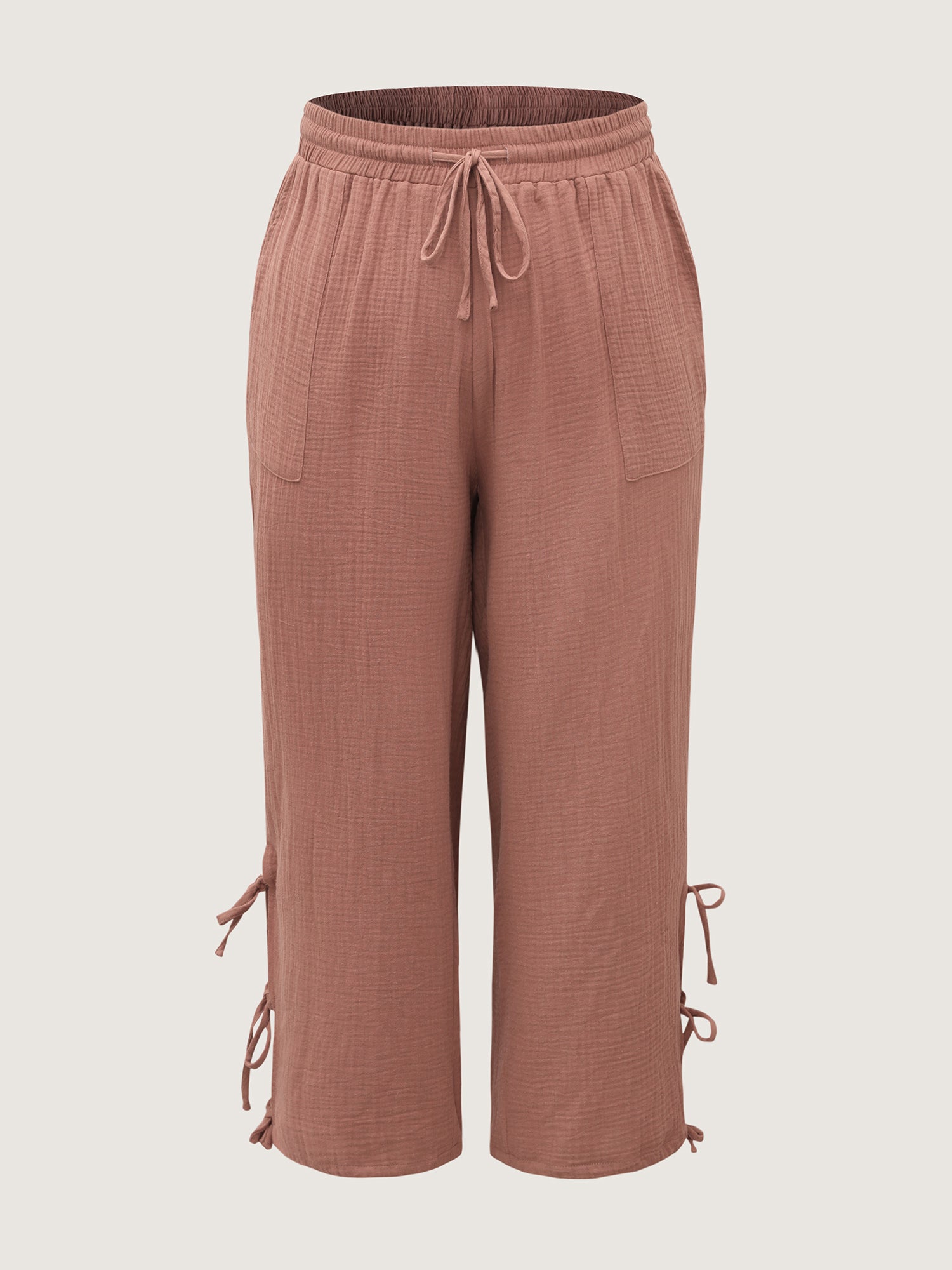 Tie-Hem Slits Cuffed Waist-Tie Pockets Pants