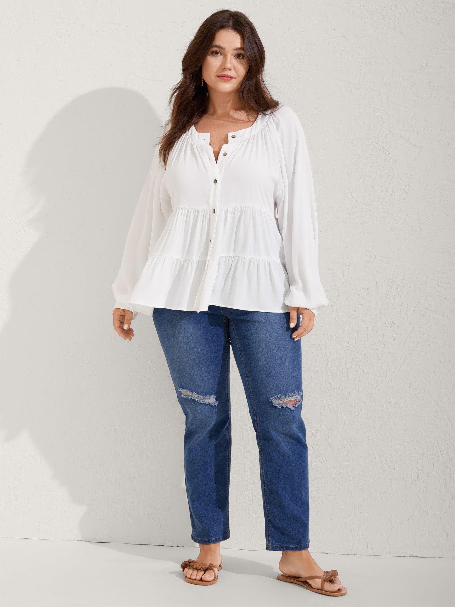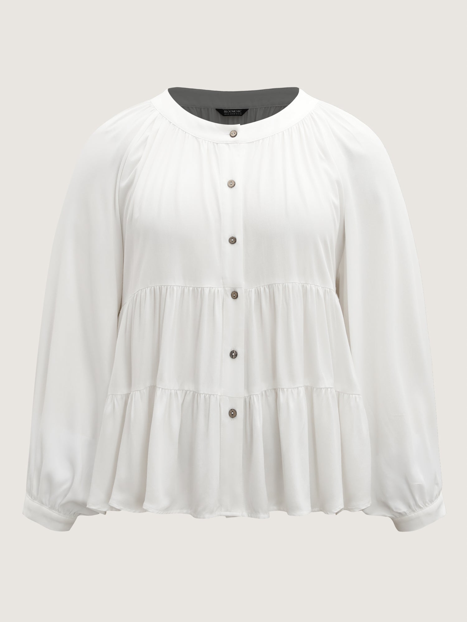 Tiered Button Placket Puffy Sleeve Blouse