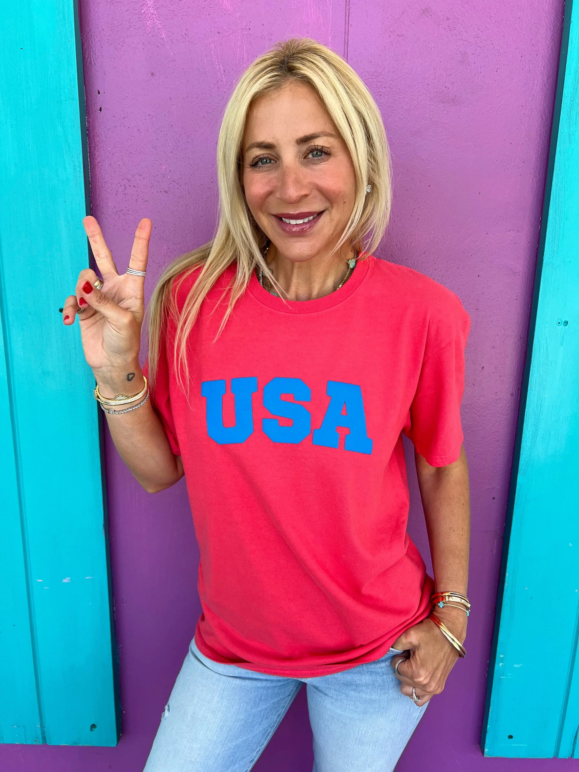 USA, YAY!!! Nothing says summer like a bold, patriotic tee, and the USA Poppy-Red Tee is here to bring the good vibes all season long. Whether you’re celebrating the Fourth, heading to a backyard BBQ, or just feeling that all-American pride, this tee is the perfect go-to.